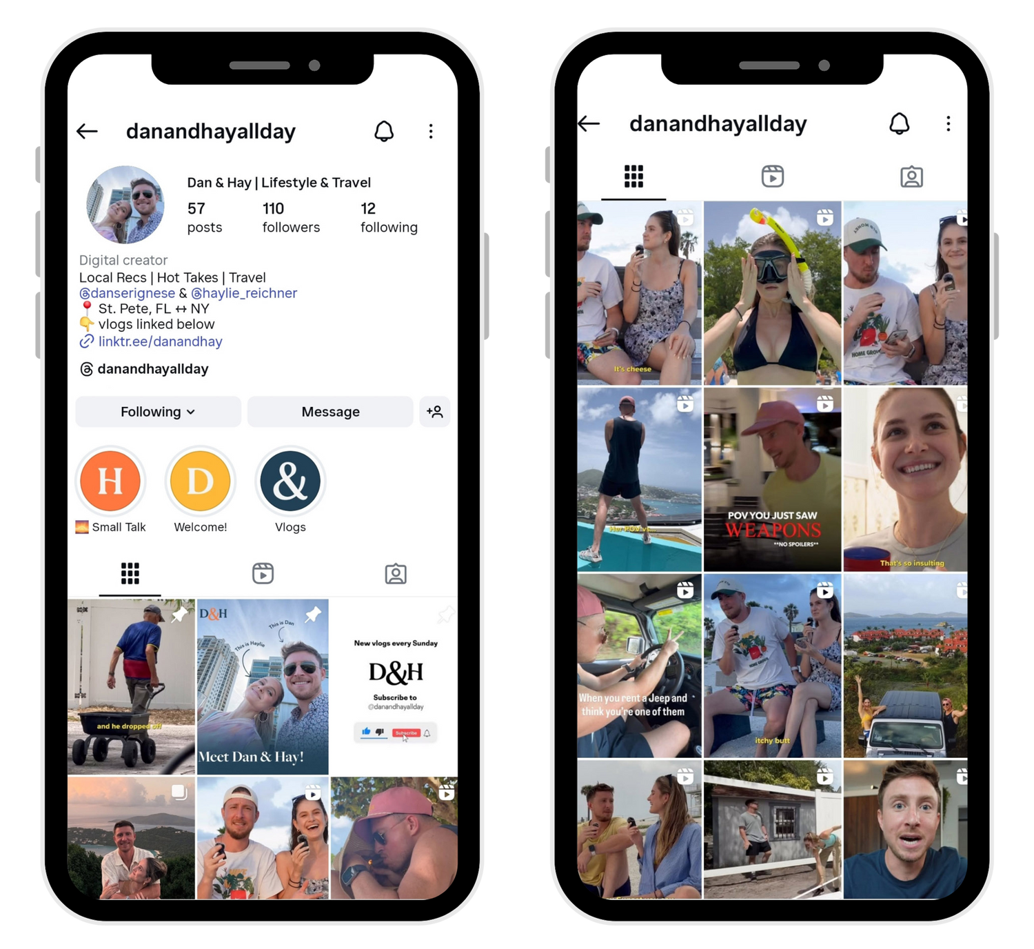 Their organic content has driven 3,000+ profile visits, showing real interest and conversion potential. With consistent weekly vlogs and authentic lifestyle storytelling, Dan & Hay are quickly building a loyal community and laying the foundation for long-term influencer success.