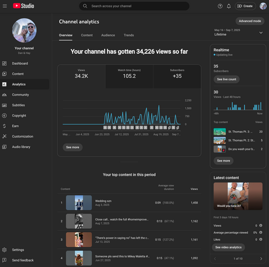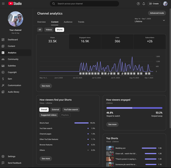 Since launching in June 2025, Dan & Hay have exploded onto the scene as a new couple’s lifestyle brand. In just two months, they’ve published 150+ posts across TikTok, Instagram, and YouTube, racking up 400K+ total video views, 25K+ likes, 700+ comments, and 550+ followers, without spending a single dollar on advertising.