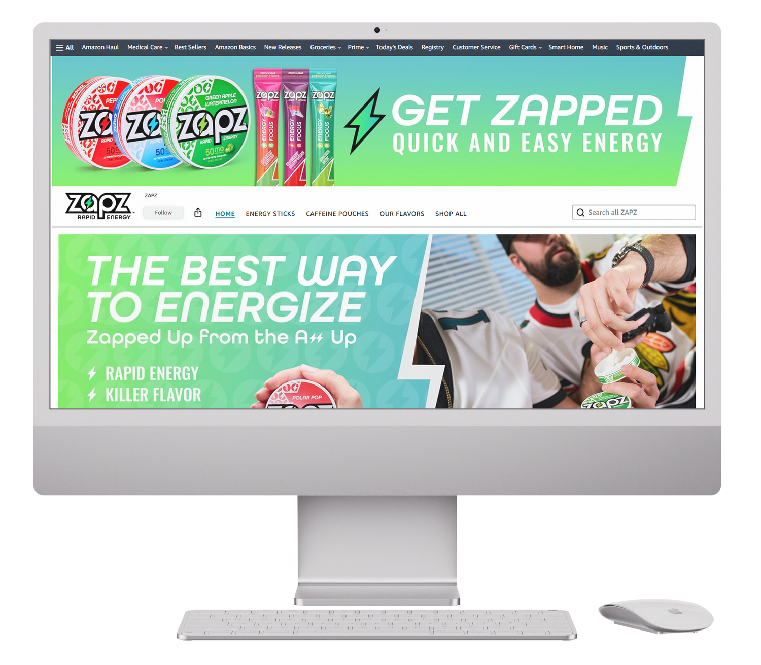 We relaunched Zapz with a full creative refresh — new listing photos, A+ Premium content, brand story, and brand store. Our team handles full account management, from daily operations to PPC campaigns across Sponsored Products, Brands, and Display.
